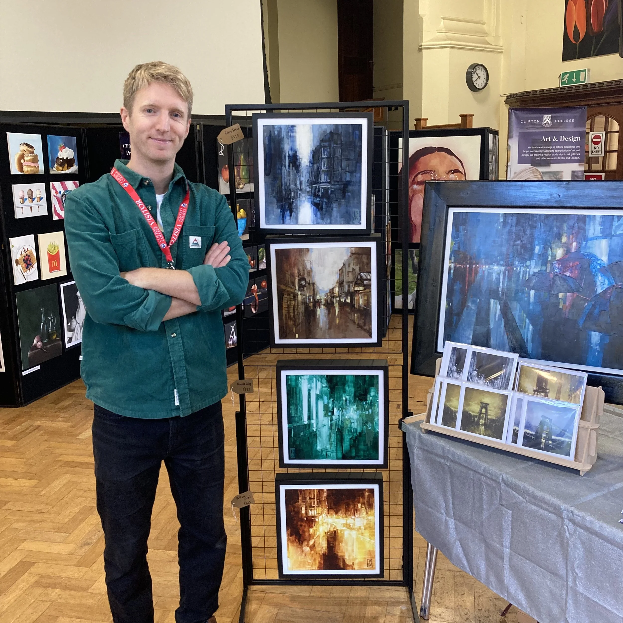 I am a self-taught, Bristol-based artist who uses oil paint to create emotive representations of streets and cities. I use a variety of tools to build depth and texture into my paintings, with the aim of bringing out the colour and the drama of city lights juxtaposed against dark shadows, while also attempting to maintain a natural balance and harmony.