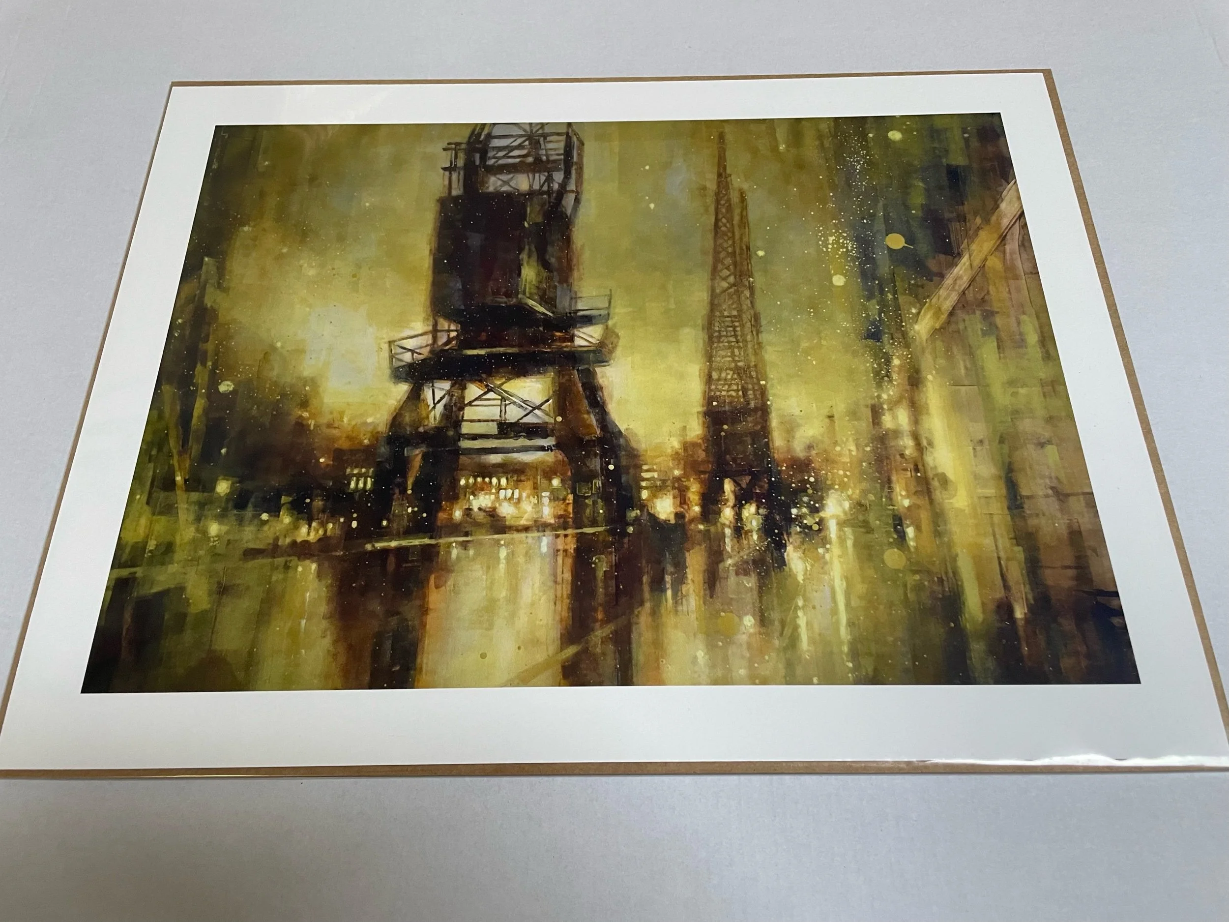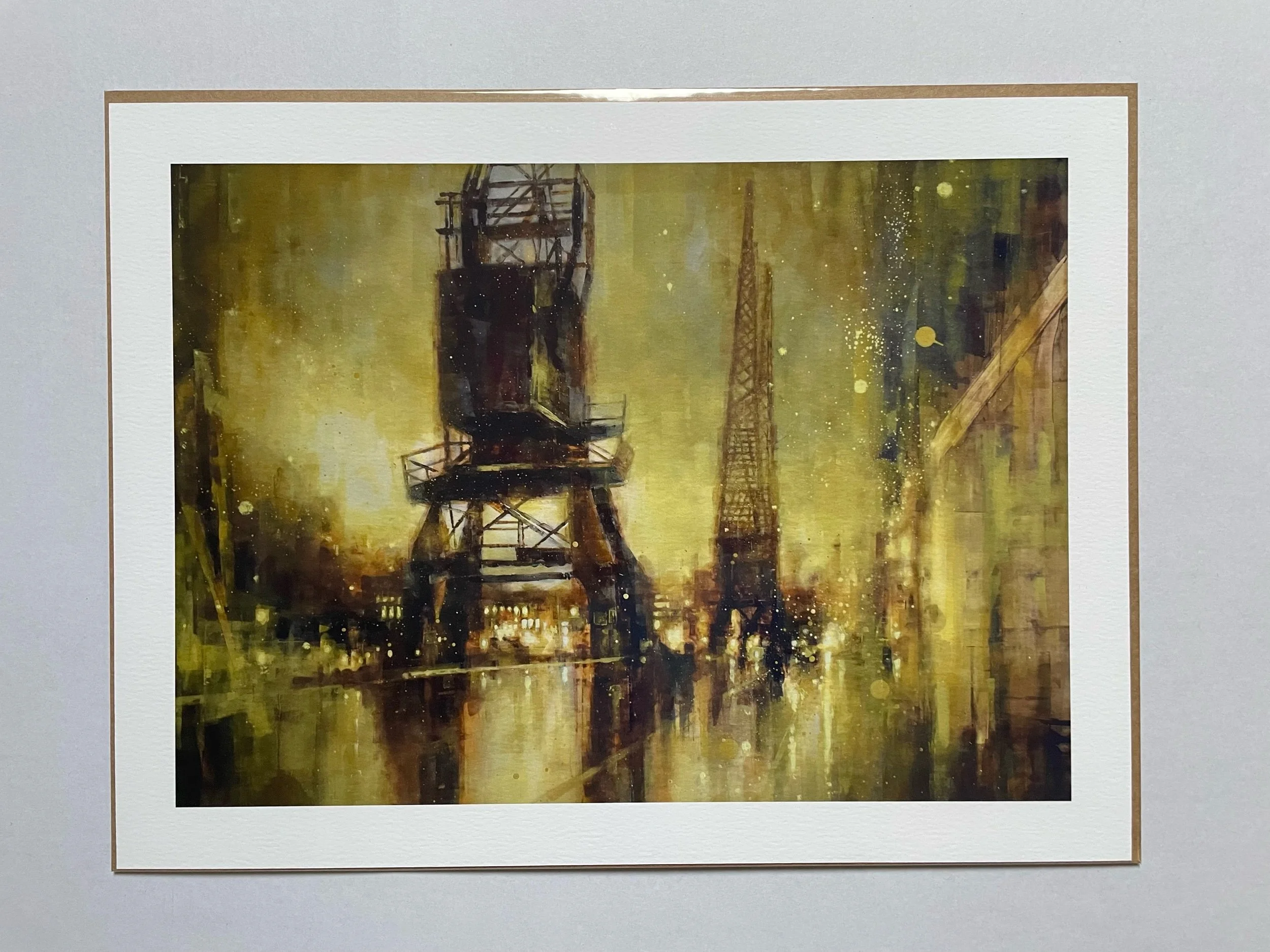 17x13” print of the painting “Princes Wharf in Gold” on archival quality paper. Size includes a one inch white border.